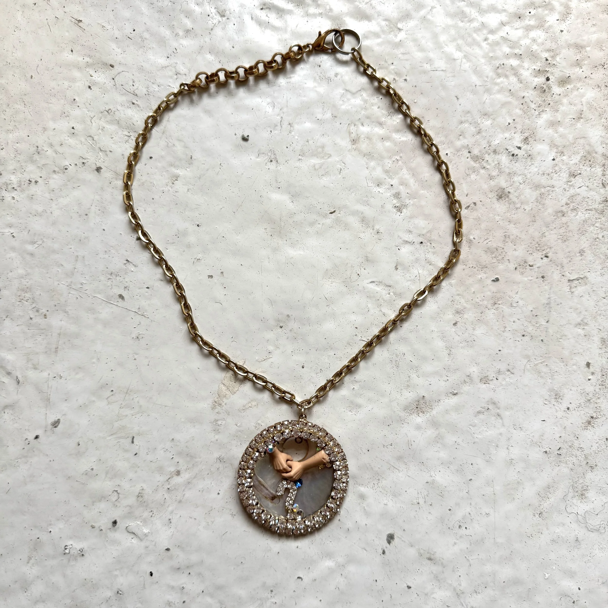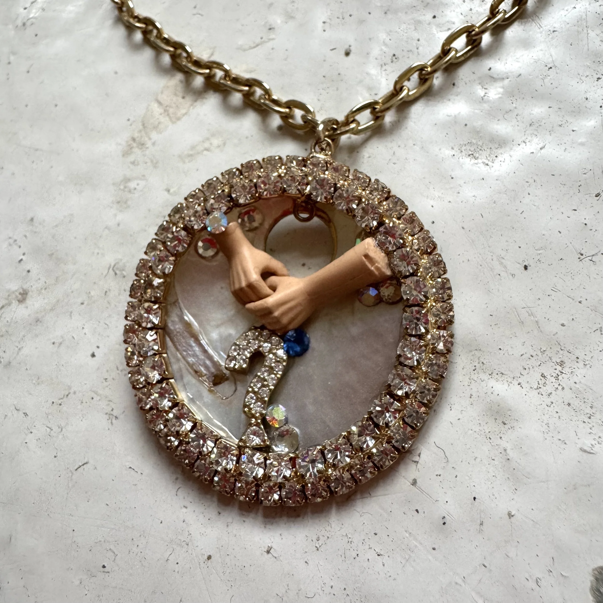 1 of 1, handmade piece of carefully assembled items ornamented with crystals.