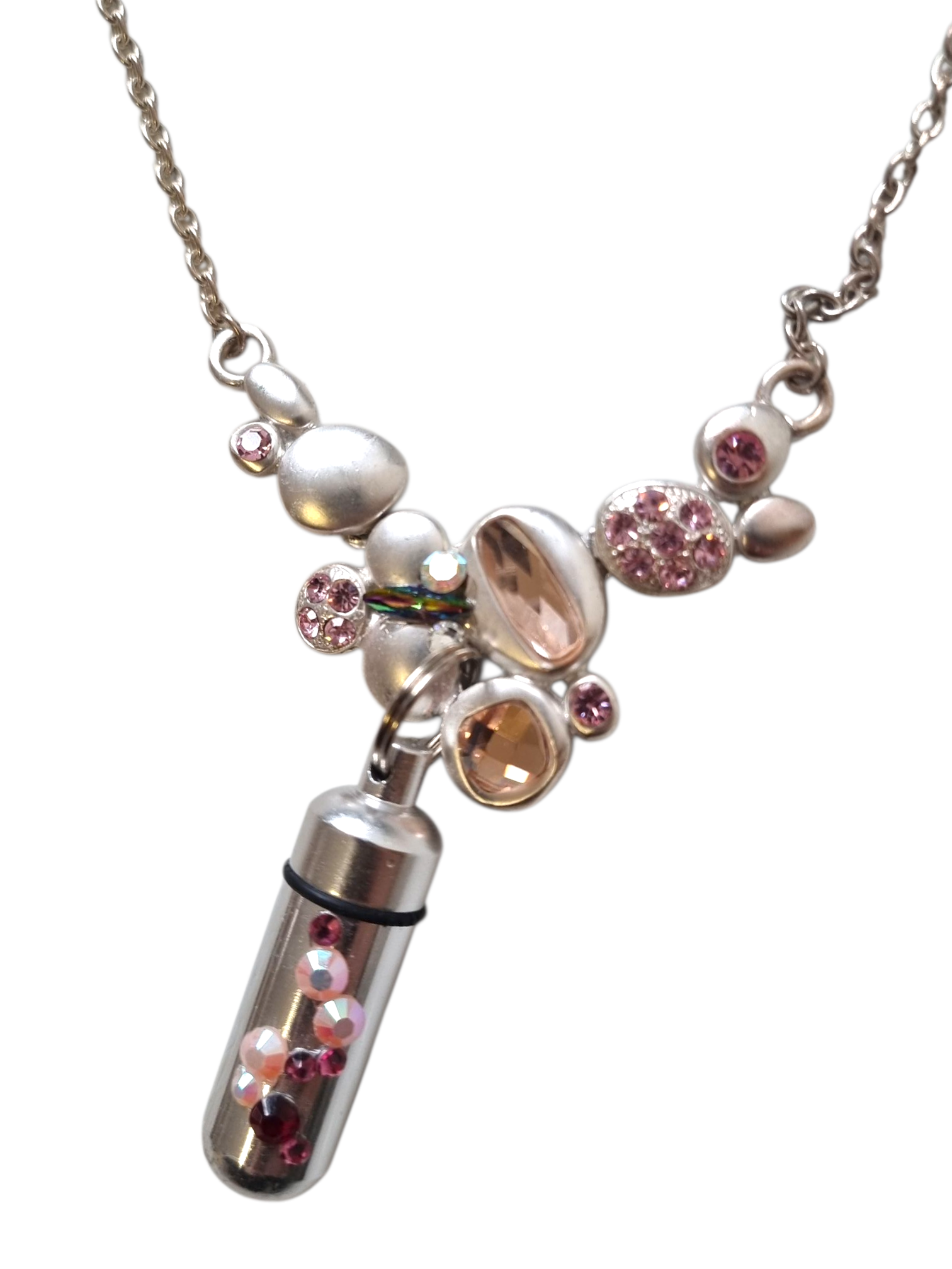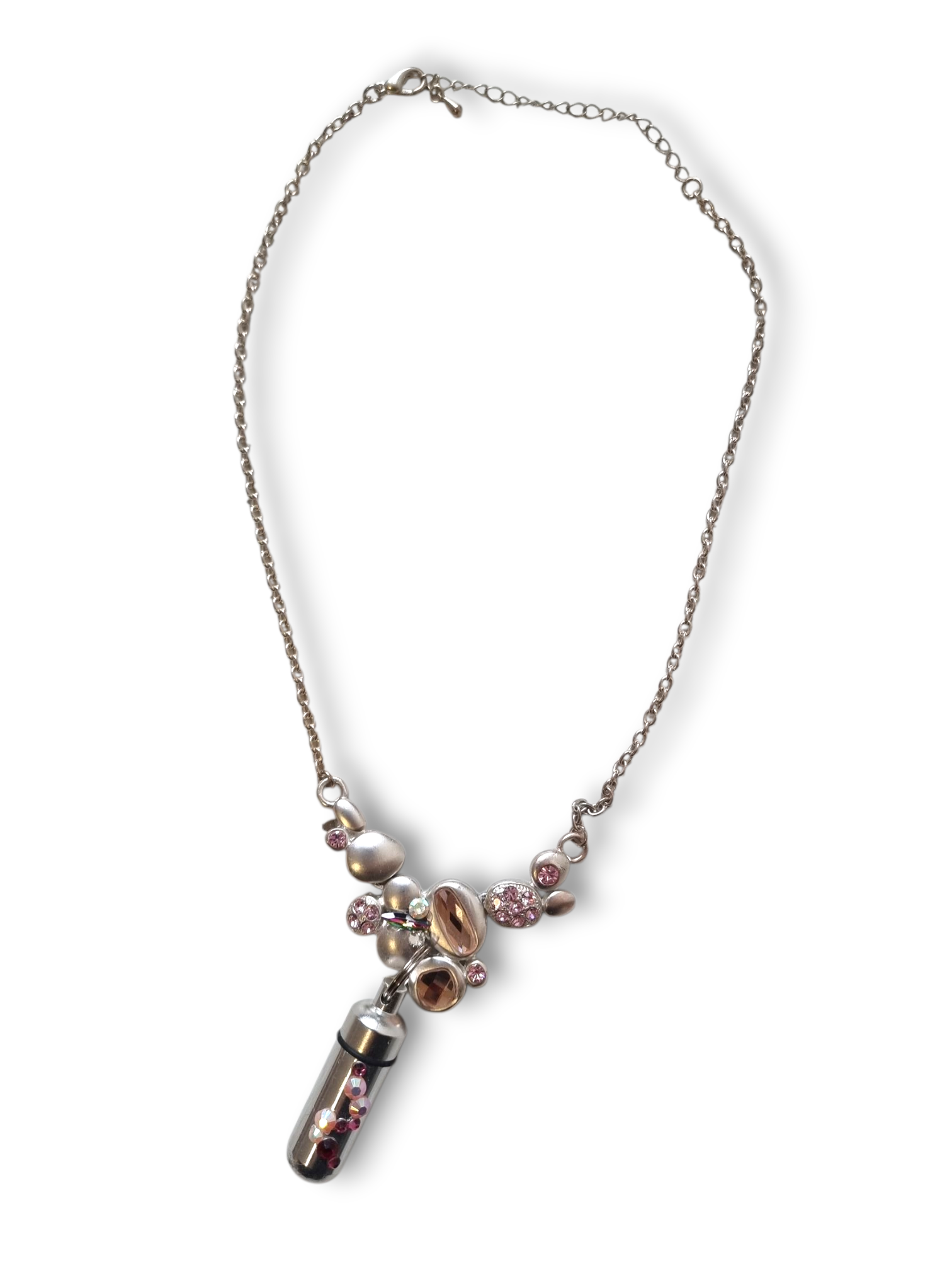 1 of 1, handmade piece of carefully assembled items ornamented with crystals.